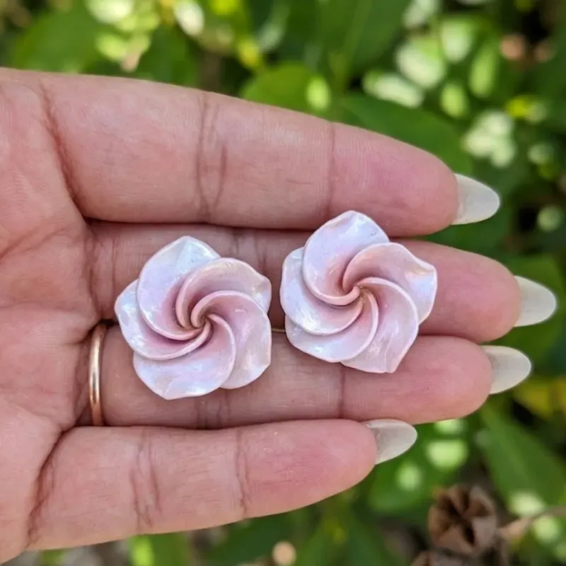 Pendientes de botón que replican la delicadeza de la plumería en un formato compacto y sofisticado.