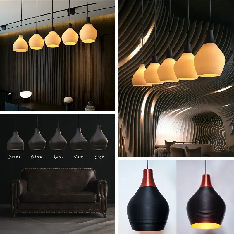 Lámparas colgantes Strata, Eclipse, Aura, Wave y Crest