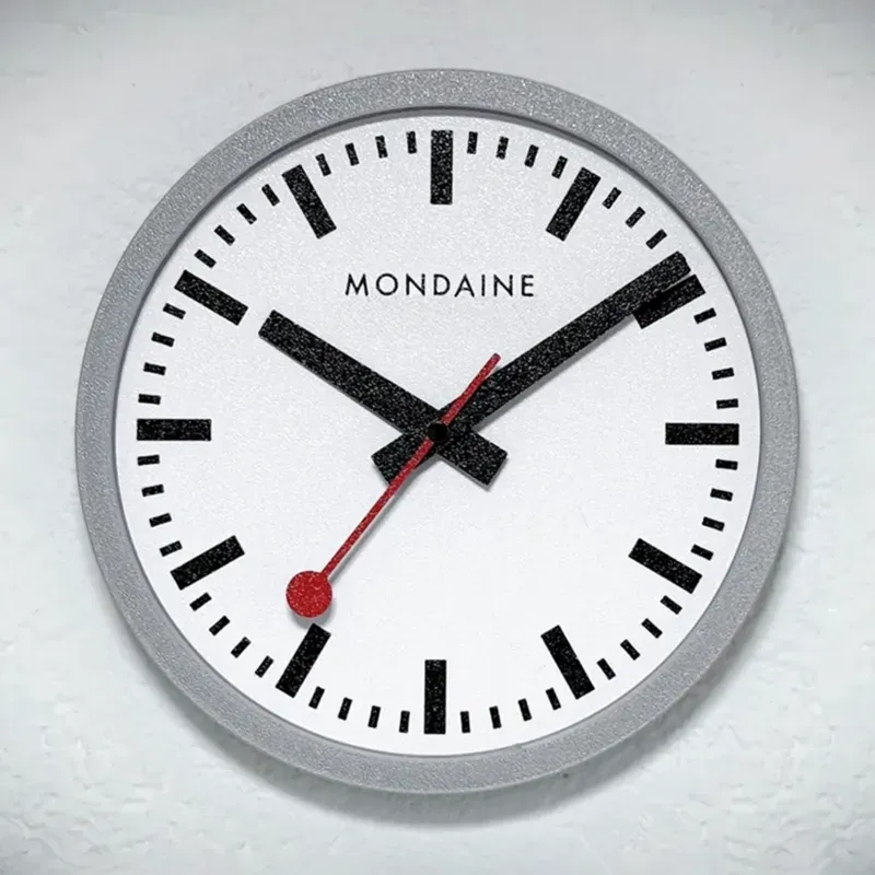 Reloj de pared inspirado en el clásico Swiss Railways de Mondaine.