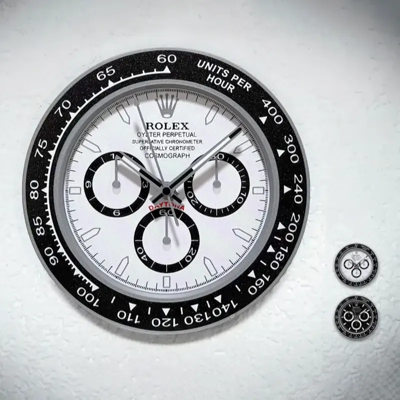 Reloj de pared inspirado en el clásico Rolex Cosmograph Daytona.