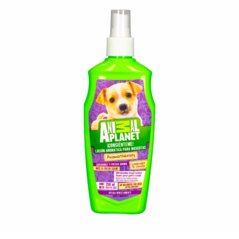 Agradable y fresco aroma a lavanda y vainilla. Elimina los malos olores del pelo de tu mascota. PH balanceado para tu mascota. Aplica directamente a 15 cm de distancia. Contenido neto: 250 ml.