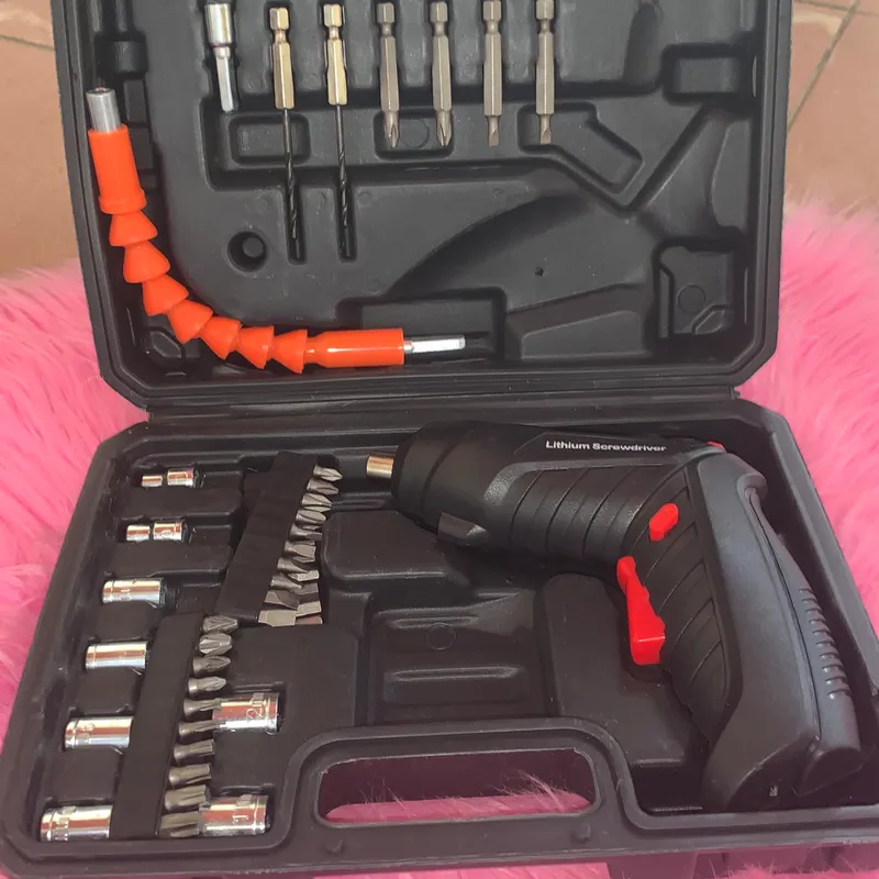 Kit de Destornillador Eléctrico Inalámbrico Recargable de 47 Piezas - Herramientas Rotativas Multifuncionales con Luz LED, Estuche de Transporte y Funciones Versátiles para Bricolaje, Reparaciones Domésticas, Carpintería y Proyectos del Hogar.