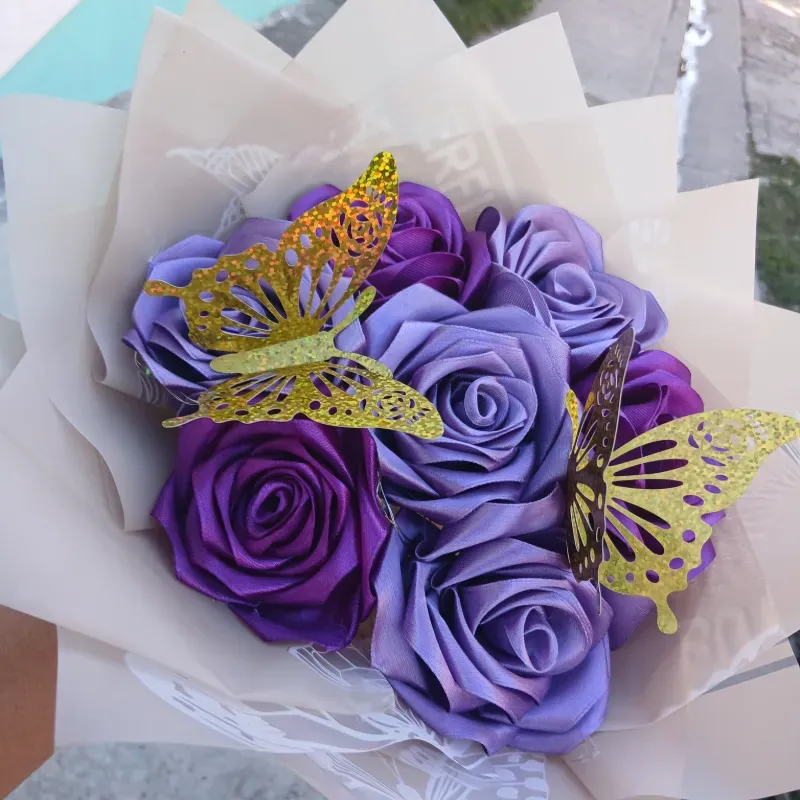 Ramo de 7 rosas eternas con mariposas 🦋decorativas y lazo 🎀