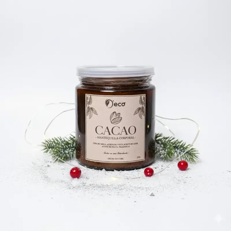Mantequilla corporal de cacao, rica en cera de abejas, manteca de cacao, aceite de aloe, aceite de coco. Humectante profunda, evita la deshidratacion de la piel. Ideal para pieles secas, atopicas, personas dibeticas, etc. Se puede aplicar en todo el cuerpo. Ideal para pieles secas, o deshidratadas. Uso diario y nocturno. Vida útil de 1 año. No es necesario refrigerar.
