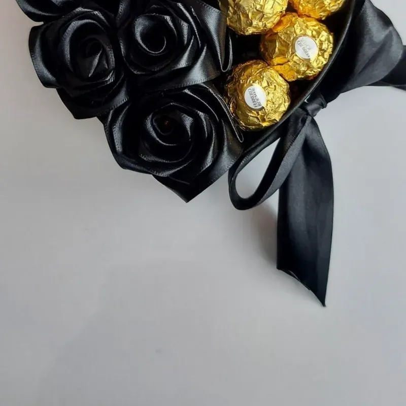 Caja con 5 Rosas Eternas y 5 Bombones Ferreros, lazo
