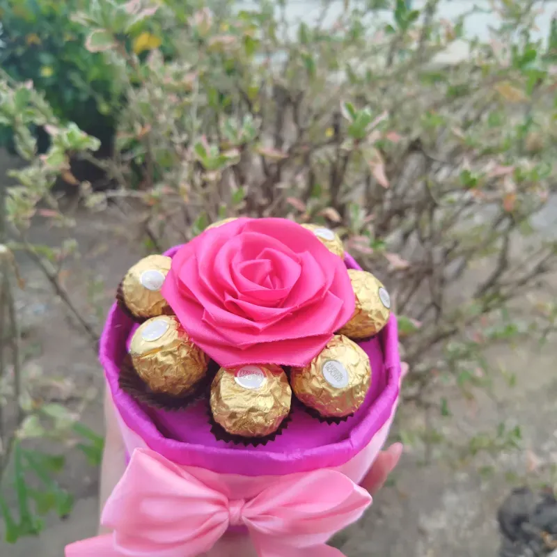 Caja con 7 Bombones Ferreros y 1 Rosa Eterna
