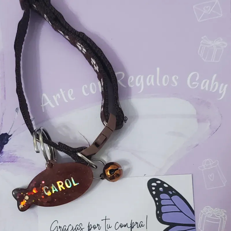 Nuestras chapas de resina se personalizan con su nombre e información de contacto, disponibles en formas adorables como huesos, patitas y pescados, perfectas para perros y gatos.