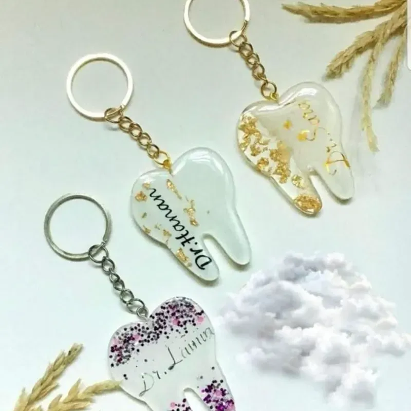 "Muela Brillante" Diseñados con una sonrisa en mente, nuestros llaveros de resina "Muela Brillante" son el accesorio perfecto para odontólogas. Elegantes y únicos, cada muela cobra vida con un toque de brillo, representando la pasión por la salud dental. Un detalle chic para profesionales que cuidan sonrisas.