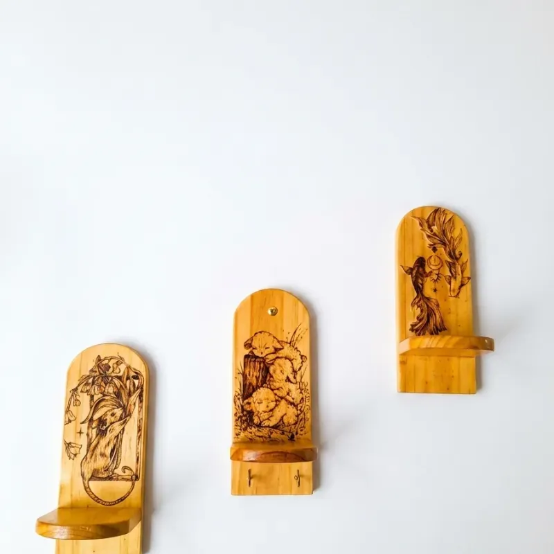 Repisas pequeñas decorativas y funcionales con diseños hermosos pintados a mano con tenica de pirograbado sobre madera