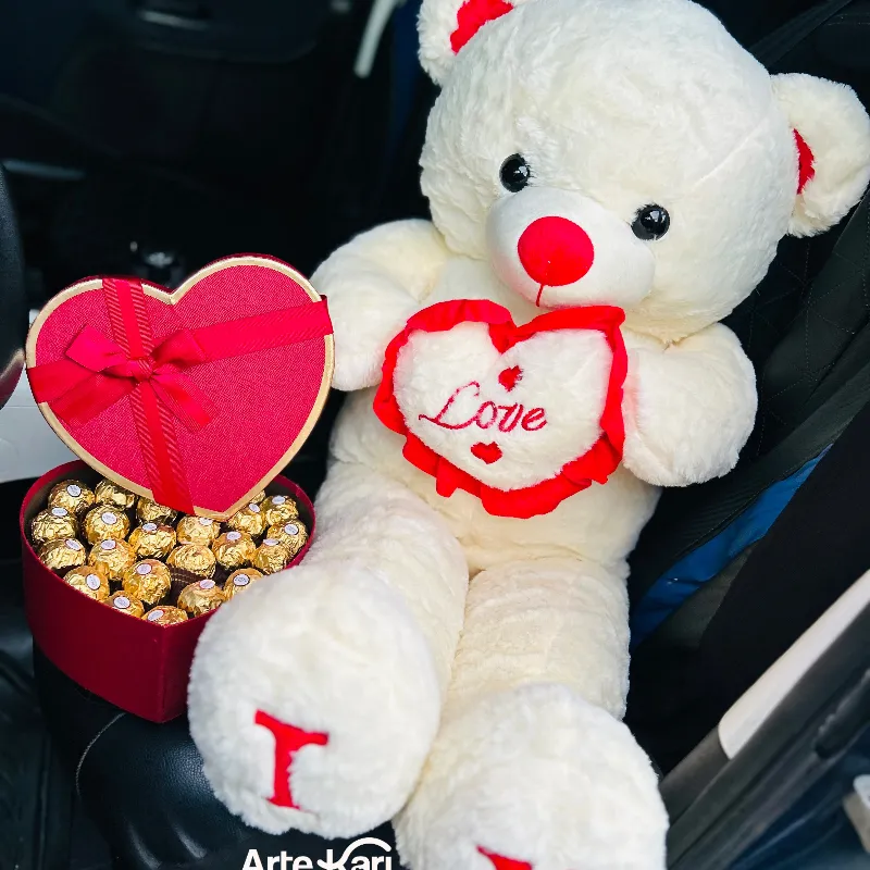 ✅1 peluche de 1 metro ✅caja de corazón + 24 bombones Ferrero rocher
