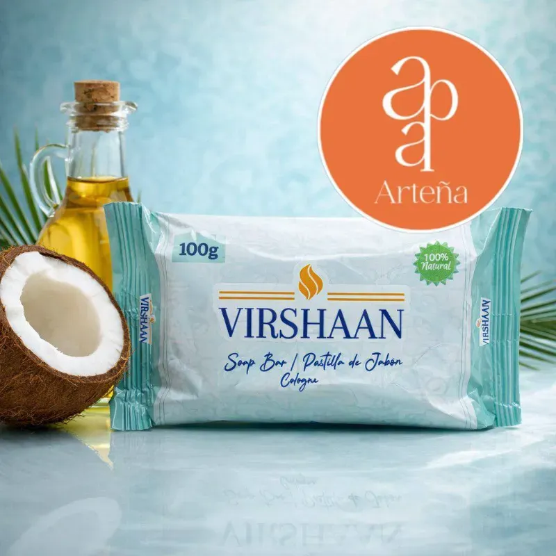 Complementa tu rutina de higiene personal con el jabón de tocador VIRSHAAN enriquecido con aceite de coco para una piel hidratada y suave.