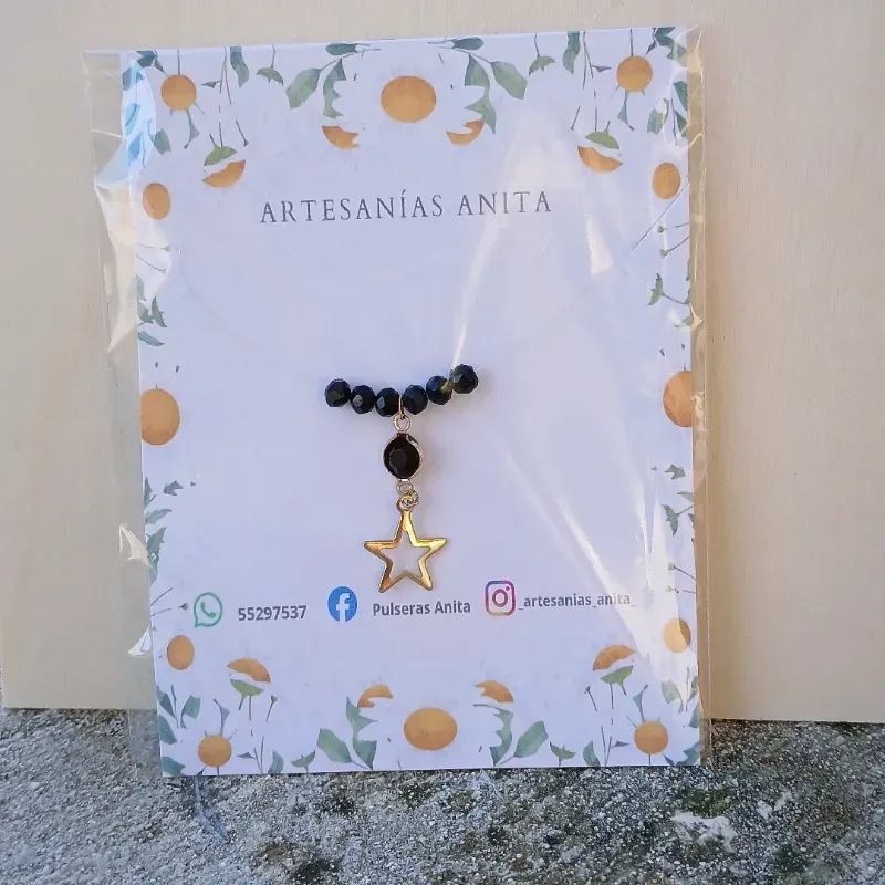 Con dije colgante de estrella y cuentas de cristal imitación de sharowki, cierre ajustable
