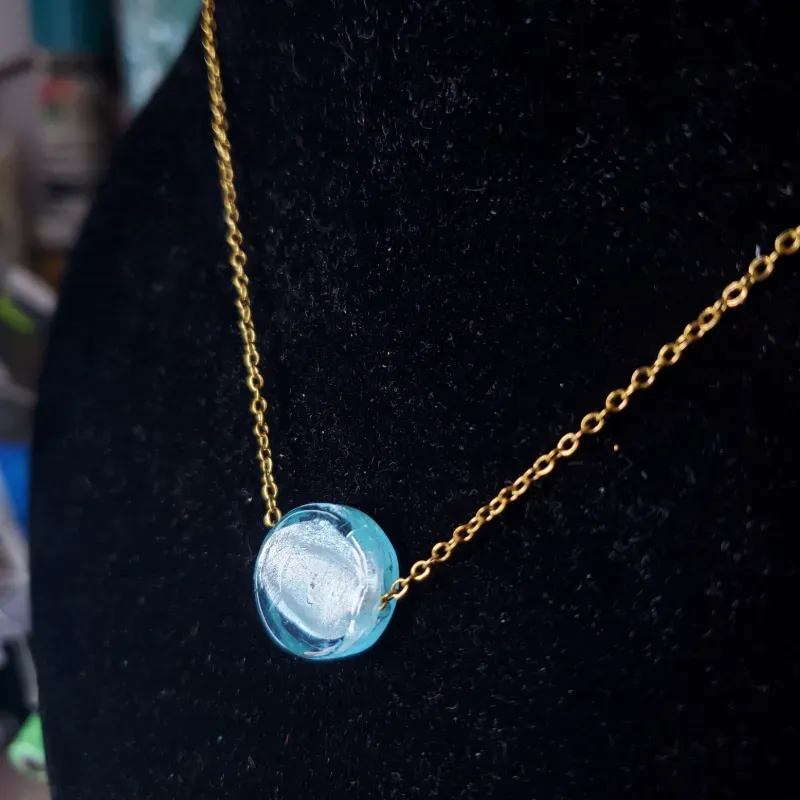 Cadena de acero inoxidable dorada y cristal azul pastel