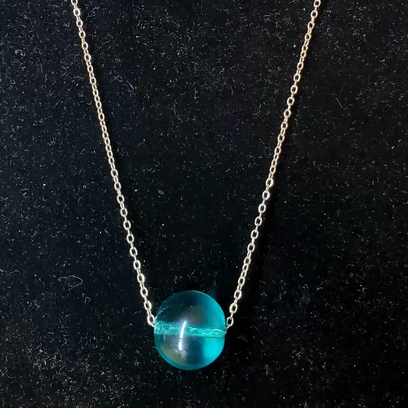 Cadena plateada y cristal turquesa profundo
