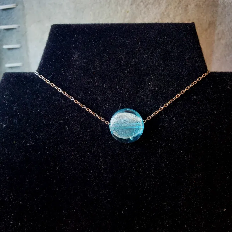Pulsera de acero inoxidable y cristal azul pastel