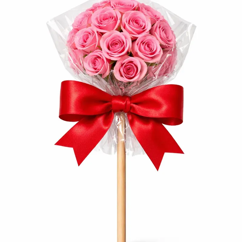 "¡Pura diversión en un palito! Nuestra paleta de flores naturales es el regalo más alegre que puedes dar. Envuelto en celofán crujiente y coronado con un lazo de seda, es un detalle que despierta sonrisas instantáneas."