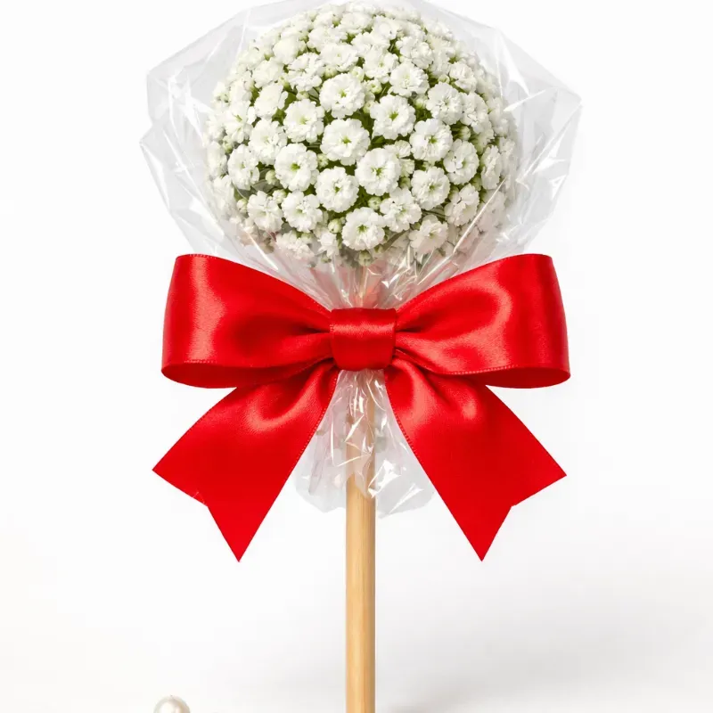 "¡Pura diversión en un palito! Nuestra paleta de flores naturales es el regalo más alegre que puedes dar. Envuelto en celofán crujiente y coronado con un lazo de seda, es un detalle que despierta sonrisas instantáneas."