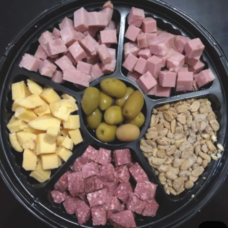 Tapa salada de Entremés de jamón y queso, aceitunas, chorizo, croquetas, galletas de soda y salsa rosa.