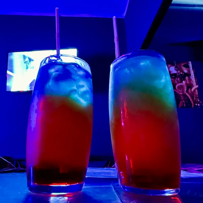 Ron Añejo 3 Años, Jugo de Naranja, Granadina y Curaçao Azul