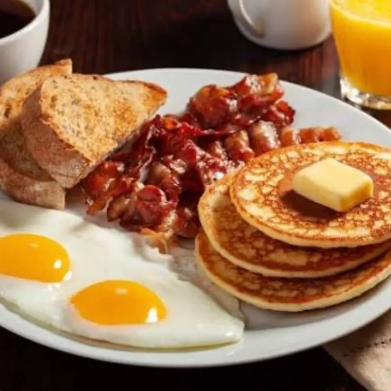 Un desayuno para disfrutar sin prisas. Huevo, bacon, embutidos, pan de molde integral y creps. Acompañamos con mantequilla, nuestra mermelada casera de temporada, jugo de fruta de temporada, café de especialidad o té a elegir. Todo lo necesario para activar el cuerpo y alegrar el alma