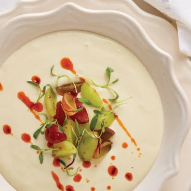 Cheddar, gouda y parmesano se unen en una crema aterciopelada con nata, pimienta blanca y un susurro de nuez moscada. Acompañada de pan crujiente para untar