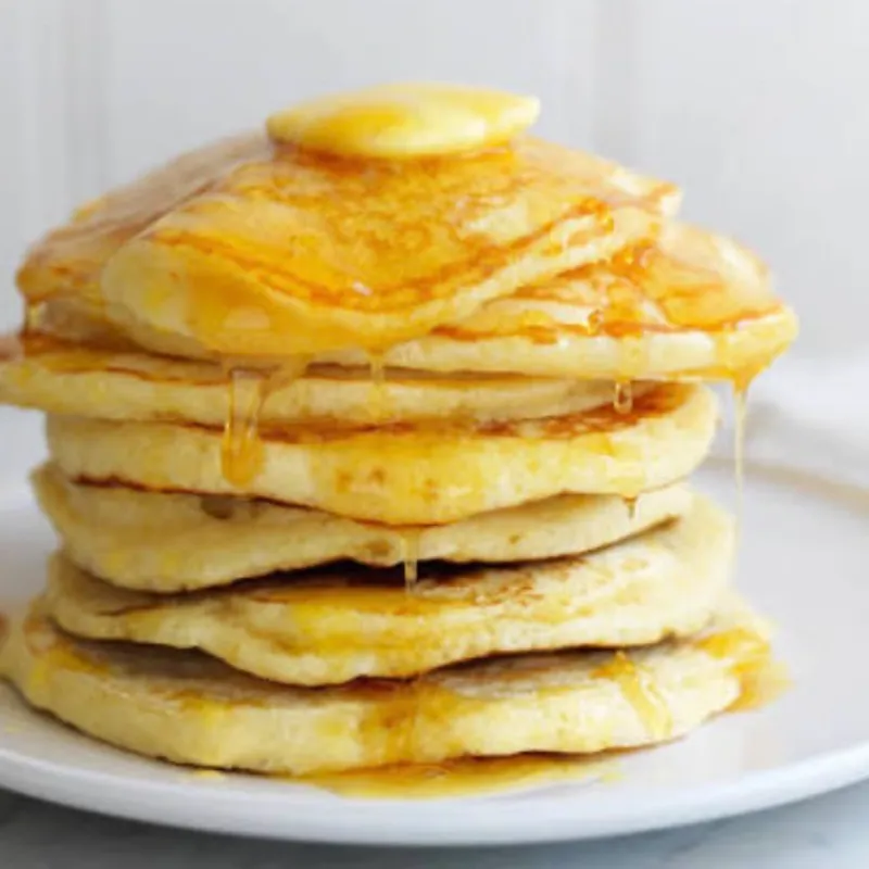 Nuestra versión del clásico panqueque americano. Una tortita grande y esponjosa, hecha con harina, huevos frescos, leche entera, mantequilla derretida y una pizca de azúcar y vainilla. Se sirve bien caliente, coronada con una generosa nuez de mantequilla fundida y un chorrito de sirope de arce puro. Puedes añadirle fruta fresca de temporada, nata montada o nutella. El desayuno o merienda perfecta para los amantes de lo dulce.