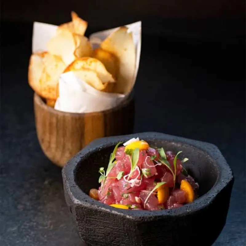 Langosta+gambas+ solomillo de ternera. Lima y jengibre + alcaparras y mostaza. Aguacate, cebolla, yema de huevo. El dúo dinámico de los tartares. Foco a la fusión.
