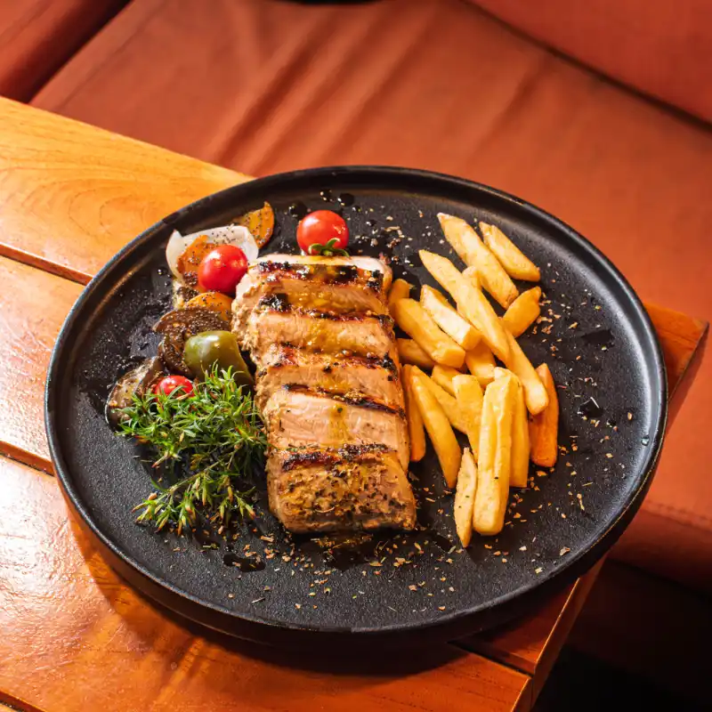 Lomo de cerdo con costra de hierba y mostaza