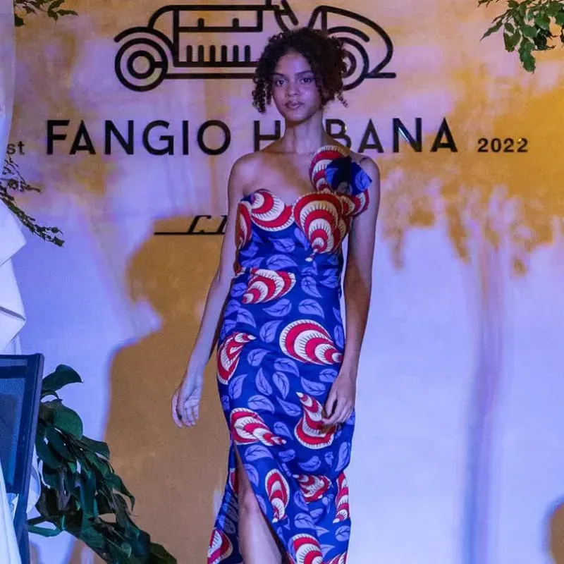 Vestido largo estampado en morado con apertura lateral