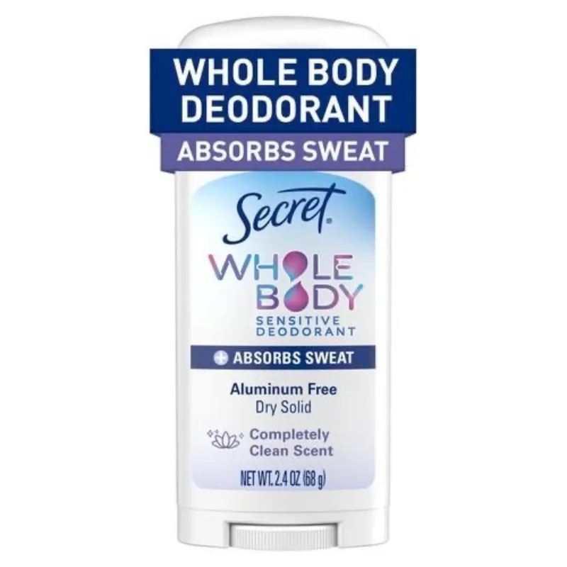 Secret se creó para usar en las axilas, la zona debajo de los pechos, los muslos, las partes íntimas, los pies y mucho más. No contiene aluminio, colorantes, parabenos ni ftalatos, y está hecho para ser suave con la piel.