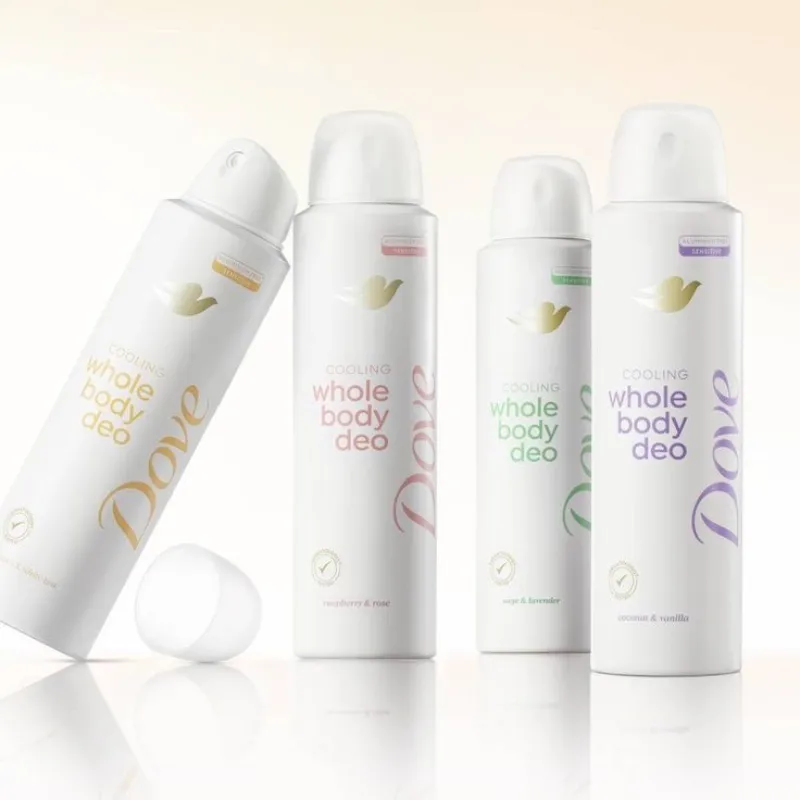 El desodorante en spray Dove Whole Body está diseñado para usarse en cualquier lugar y es suave con todas las zonas, desde las axilas, la zona íntima*, los muslos, los dedos de los pies e incluso la piel recién afeitada.