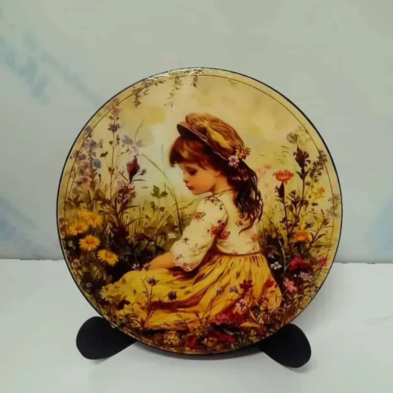 Hermosos platos de madera barnizada con pedestal también de madera, ideales para decorar espacios especiales de su hogar o negocio. Personalizables con la imagen o diseño de su elección.