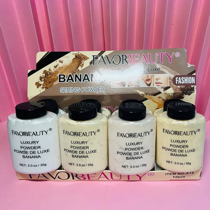 👉🏻El polvo banana es un polvo facial ultra fino y su función es sellar la base para que tenga mayor durabilidad.