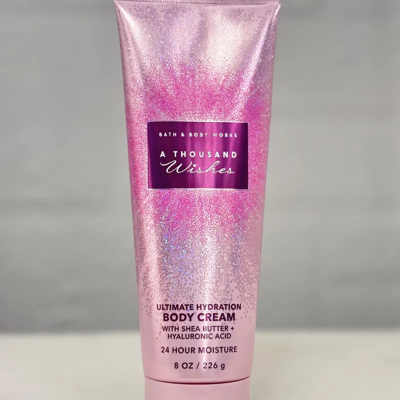 Crema corporal de textura rica y envolvente, diseñada para una hidratación intensa y prolongada. Su fórmula concentrada, enriquecida con mantecas y aceites nutritivos, penetra profundamente en la piel, restaurando su suavidad y confort durante horas. Ofrece la misma fragancia emblemática A Thousand Wishes, con su alegre combinación de notas de champagne, melocotón jugoso y un fondo cálido de almizcre y flores blancas. Presentación en tarro de 8 oz / 226 g, ideal para pieles que necesitan un extra de nutrición o para su uso en zonas más secas como codos, rodillas y pies.