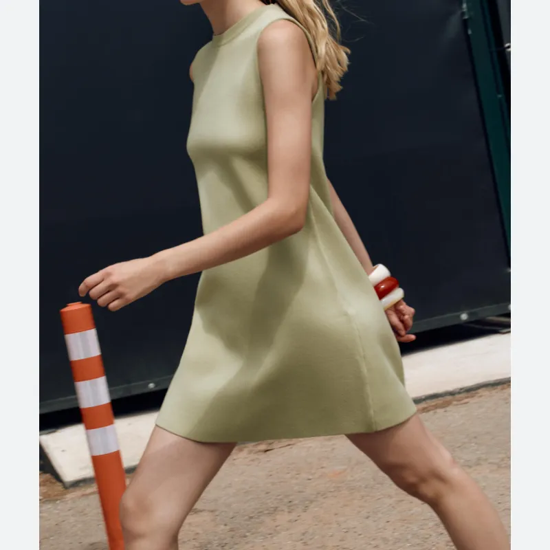Vestido corto de corte recto y diseño minimalista. Confeccionado en un tejido estructurado que aporta caída limpia y sofisticada, este vestido destaca por su silueta sencilla y contemporánea. Su diseño sin mangas y cuello alto realza la figura con naturalidad, ofreciendo un look fresco, moderno y atemporal. Ideal para quienes apuestan por la elegancia sin esfuerzo, es una pieza versátil que funciona tanto para el día como para estilismos urbanos más refinados.