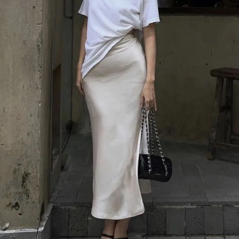 Falda de Satín Beige Elegante y versátil, con un acabado sedoso que realza la feminidad en cada ocasión.