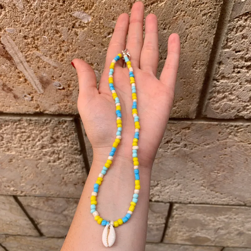 Collar de mostacillas y dije de caracol, puede cambiarle los colores a su gusto, ideal para este verano en la playa 🌊