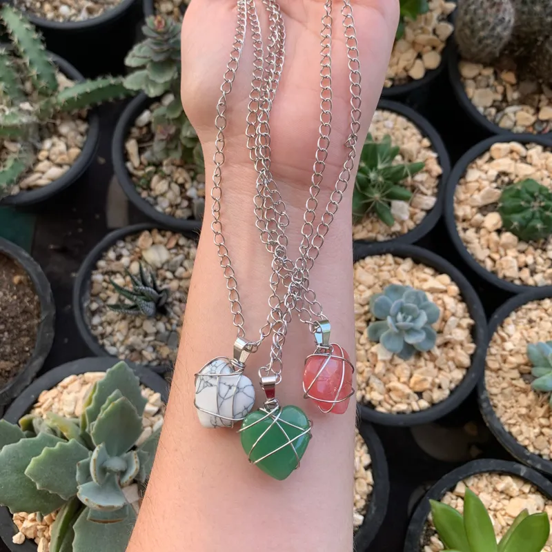 Cadena de acero inoxidable, con dije de cuarzo recubierto con alambre de acero