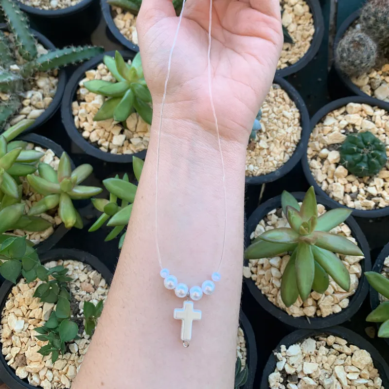 Fantasmita perlado con dije de cruz