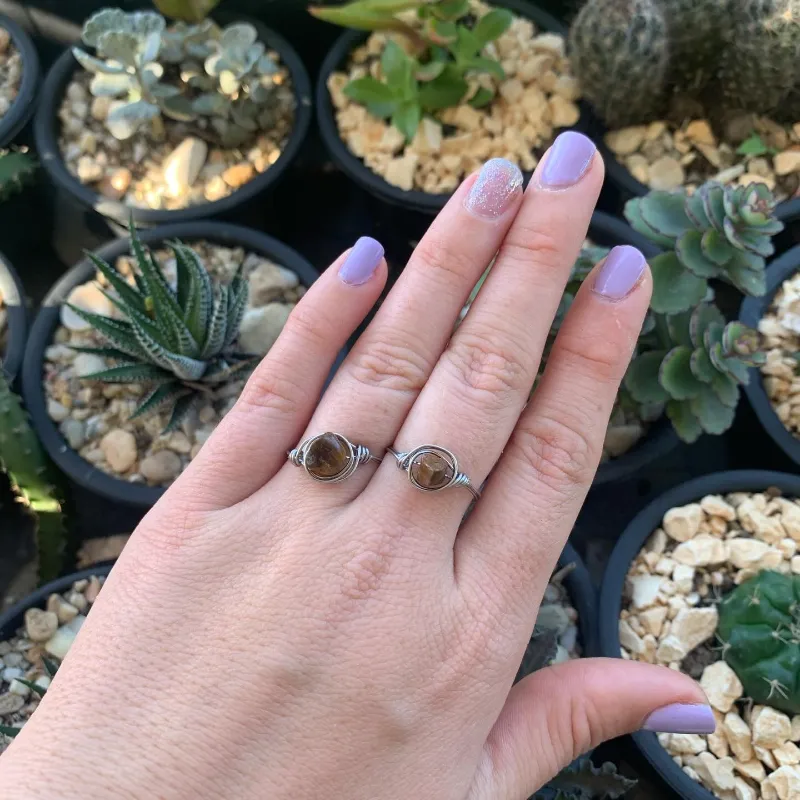 Anillos de acero inoxidable, con piedras naturales
