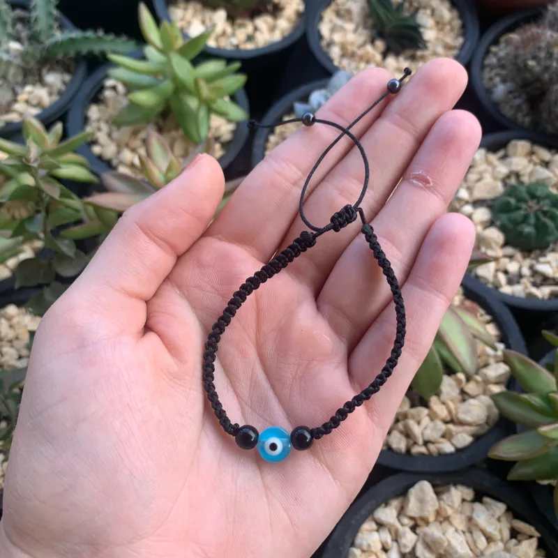 Tejido en negro con ojo turco azul celeste
