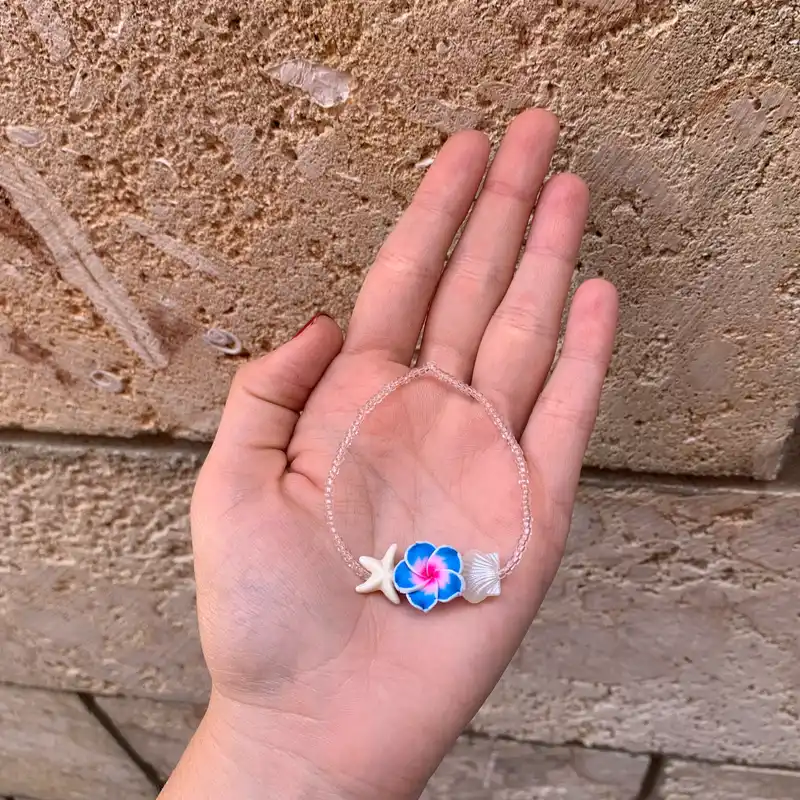 Pulsera disponible con perlitas negras y multicolores además, puede cambiar el color de la flor a su gusto