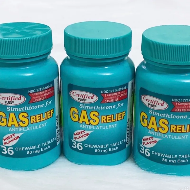 Cada tableta masticable contiene 80 mg de simeticona, dise帽ada para romper las burbujas de gas en el sistema digestivo.聽 Uso: Alivia la presi贸n, hinchaz贸n y plenitud estomacal.聽 Presentaci贸n: El frasco contiene 36 tabletas masticables con sabor a menta.聽 Dosificaci贸n com煤n: Se recomienda masticar bien 1 o 2 tabletas despu茅s de las comidas y al acostarse, sin exceder las 6 tabletas al d铆a.