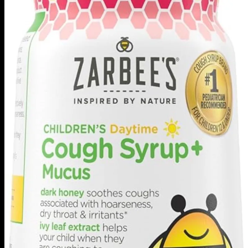 Zarbee's Children's Daytime Cough Syrup+: Formulado para niños de 2 años en adelante, utiliza miel oscura para calmar la tos y extracto de hoja de hiedra para la mucosidad.