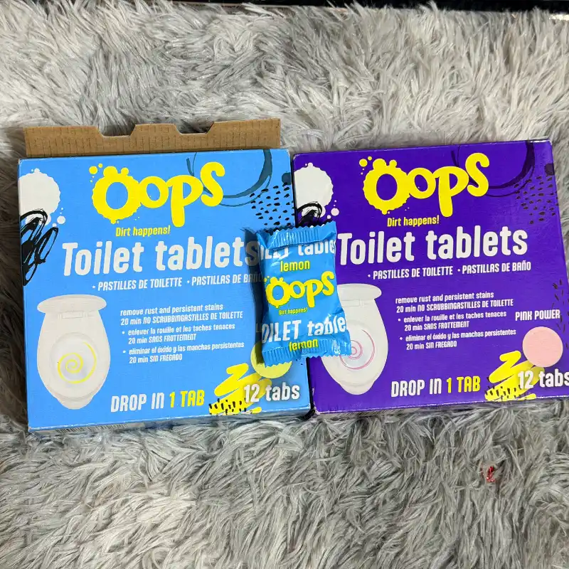 Las tabletas para inodoro Oops son un producto de limpieza diseñado para eliminar el óxido y las manchas persistentes de forma rápida y sin necesidad de fregar. Estas tabletas vienen en paquetes de 12 unidades y están disponibles en fragancias como Pink Power (vanguardista aroma floral o afrutado) y Lemon (limón).
