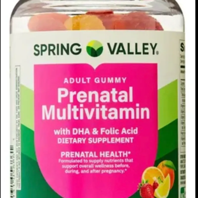 Spring Valley Prenatal Multivitamin: Contiene DHA y ácido fólico, con sabores frutales naturales y 90 gomitas por frasco.