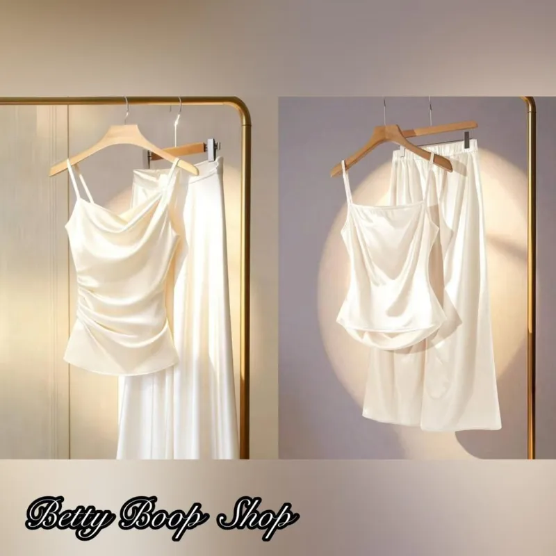 Conjunto beis de pantalones de satin