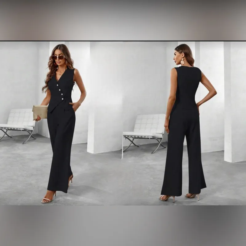 Conjunto negro de pantalón y chaleco