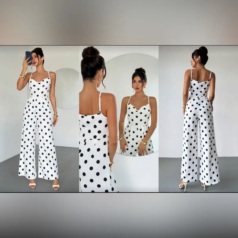 Enterizo blanco pantaloneta de lunares