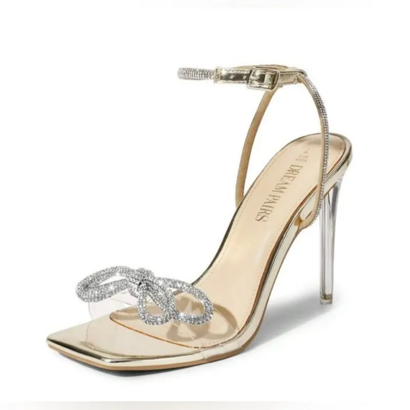 Sandalias de tacón con lazo, y decoración de lazo con punta cuadrada y correa de tobillo